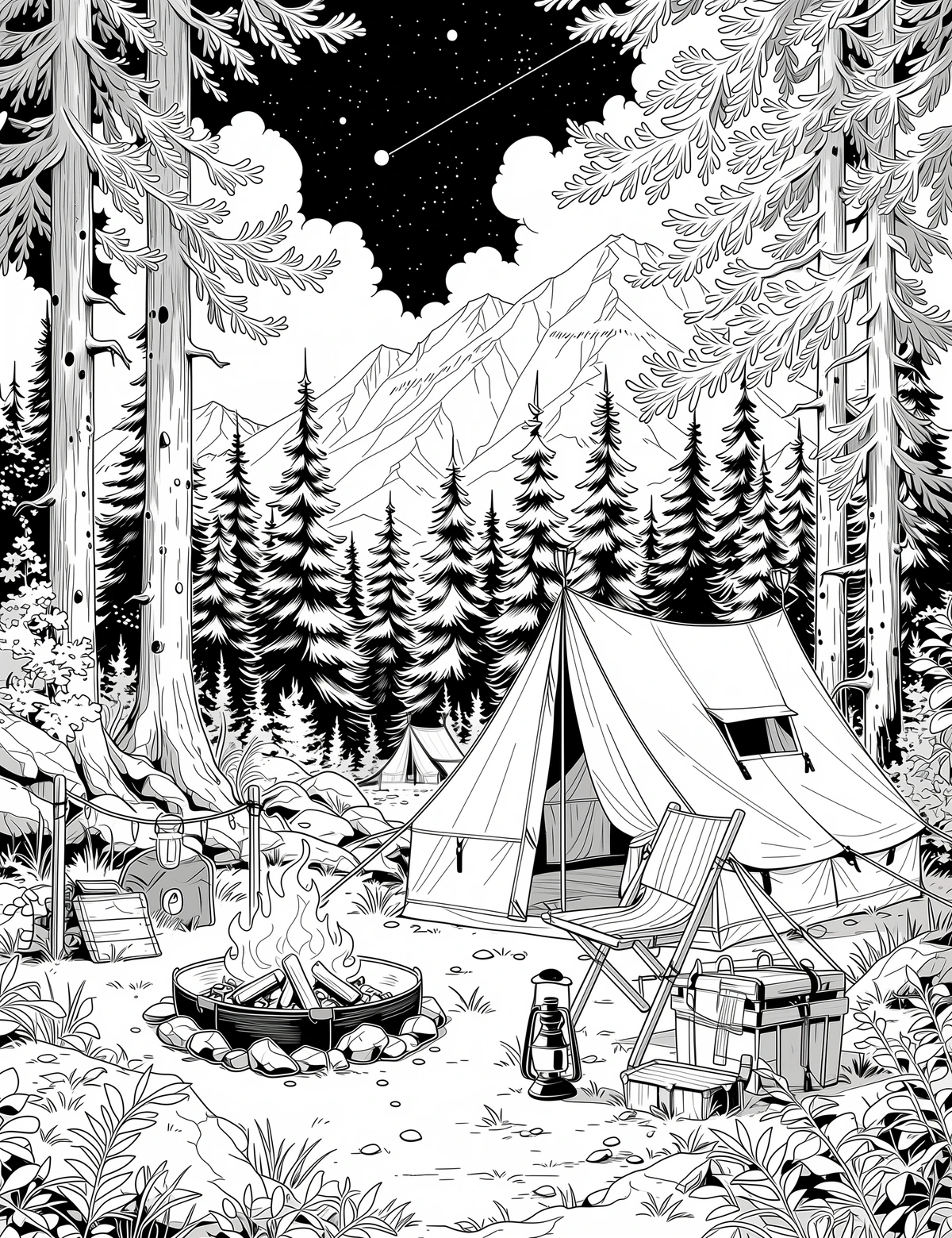 Peaceful Camping Night Coloring Page